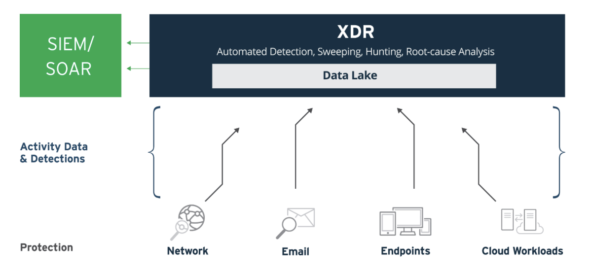 XDR extends EDR capabilities to protect more than endpoints. The XDR solution “extends” across the infrastructure, streamlining security data ingestion, analysis and workflows across an organization’s entire security stack to enhance visibility around hidden and advanced threats, and to unify the response. When purchased as a managed solution, XDR will also provide access to experienced experts in threat hunting, threat intelligence and analytics.