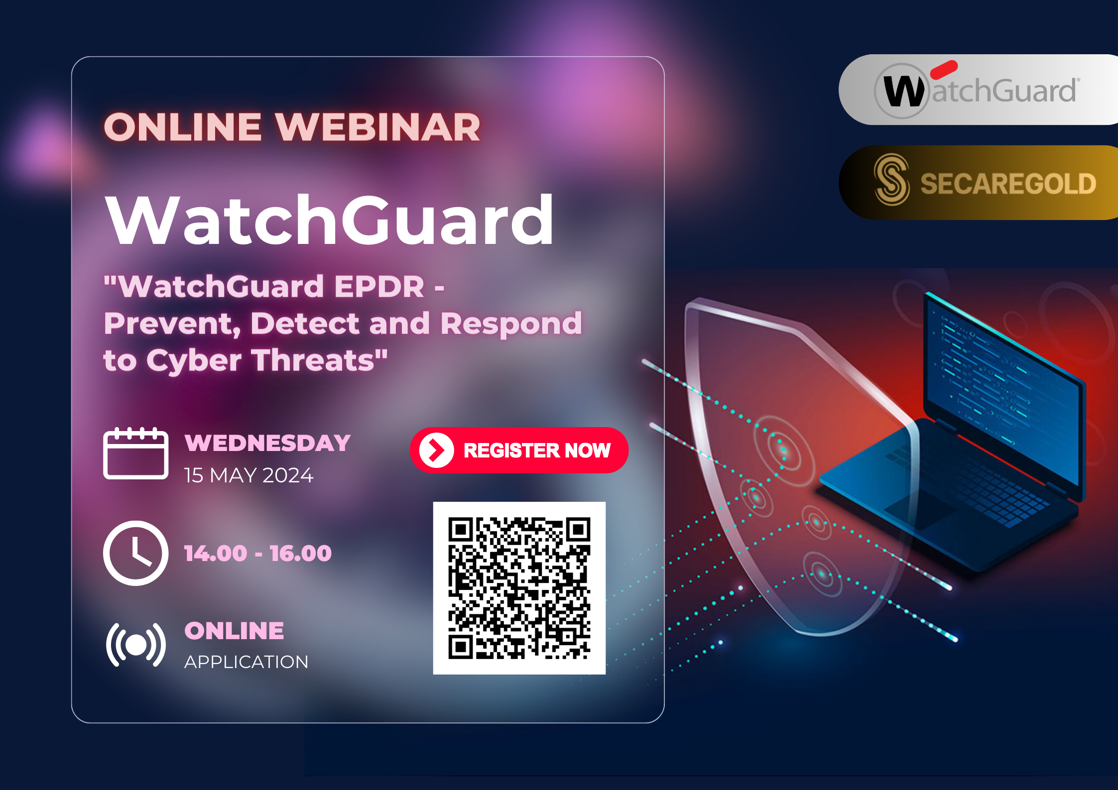 SECAREGOLD ร่วมกับ WatchGuard Thailand ขอเชิญลูกค้าทุกท่าน เข้าร่วมงานสัมมนาออนไลน์ในหัวข้อ "WatchGuard EPDR - Prevent, Detect and Respond to Cyber Threats"