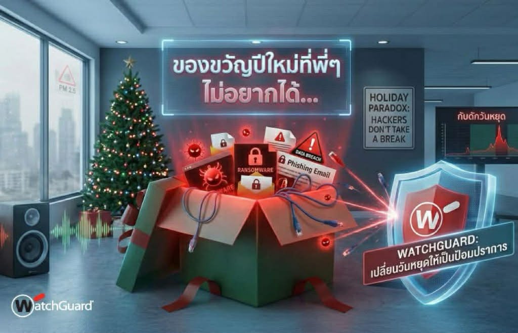 ความเข้าใจผิดที่คนทั่วไปอาจคิด ว่าแฮกเกอร์จะหยุดปีใหม่พร้อมกับเรา ใครจะมาแฮก หรือโจมตีเราช่วงนี้ เขาพักผ่อนกันหมดแล้ว แต่จากสถิติทั่วโลกกลับตรวจพบผลในทางตรงข้าม ซึ่งแอดจะร่วมพาพี่ๆไปสำรวจสิ่งที่เรียกว่า “Holiday Paradox” หรือ “กับดักวันหยุด” ที่องค์กรต้องระวัง พร้อมกางแผนที่ความปลอดภัยที่จะเปลี่ยนวันหยุดที่แสนเปราะบาง ให้เป็นป้อมปราการที่แข็งแกร่งด้วยโซลูชันจาก WatchGuard