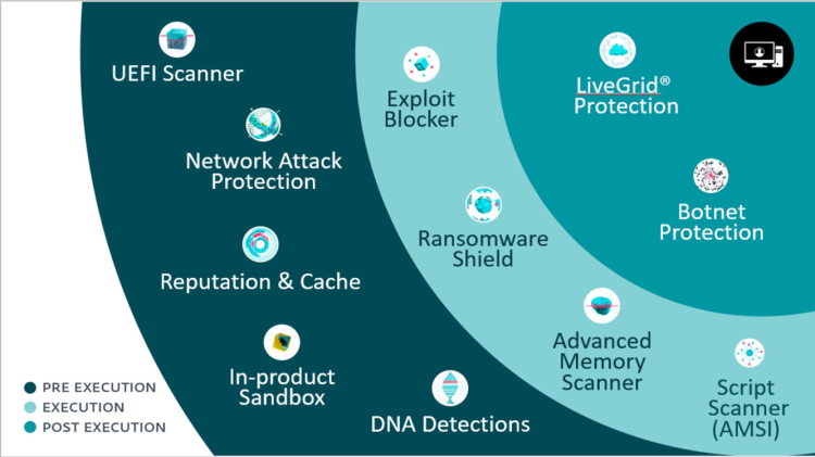 การรักษาความปลอดภัยเอ็นด์พอยท์ที่ดีที่สุดในระดับเดียวกัน โดย ESET ใช้วิธีการแบบเลเยอร์ที่ผ่านการตรวจสอบแล้ว (รวมสิ่งที่ดีที่สุดของโลกทั้งหมดเข้าด้วยกัน: ชื่อเสียงบนคลาวด์ การเรียนรู้ของเครื่อง และการตรวจสอบพฤติกรรมเชิงลึก)
