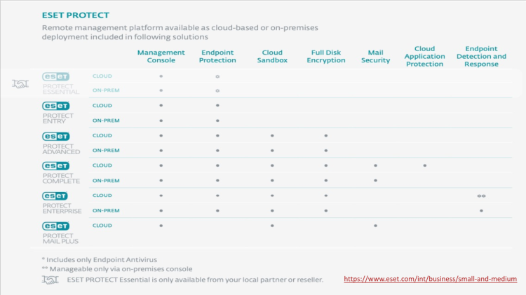 คอนโซลการจัดการ ESET PROTECT ที่เข้าถึงได้ง่ายสามารถปรับใช้ในองค์กรหรือในระบบคลาวด์ได้ ขึ้นอยู่กับความต้องการของผู้ใช้ โดยให้การจัดการความปลอดภัย TCO ที่ต่ำกว่า