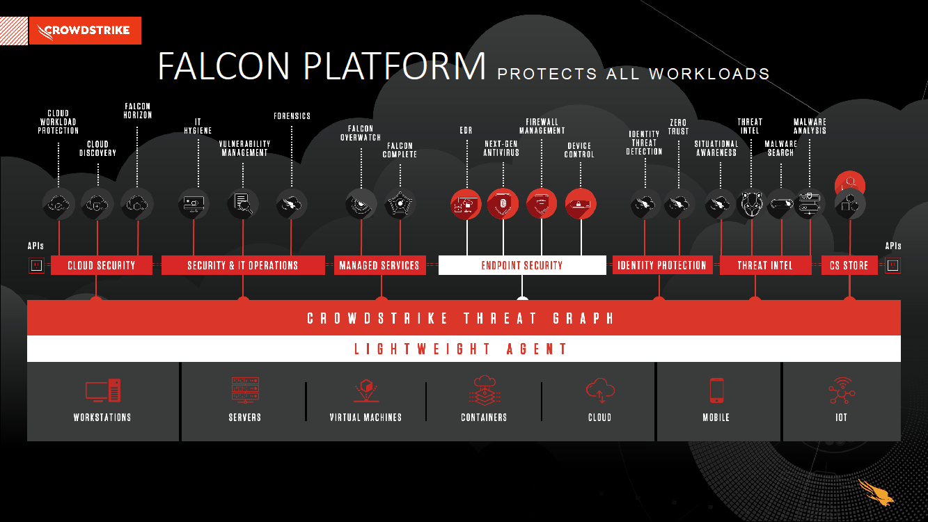 CrowdStrike Falcon® Endpoint Protection Enterprise sets the new standard in endpoint security with the first and only cloud-native security platform proven to stop breaches by unifying next-gen antivirus (NGAV), endpoint detection and response (EDR), managed threat hunting and integrated threat intelligence, in a single cloud-delivered agent.