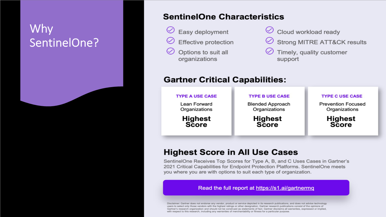We do endpoint security and we do it well. SentinelOne truly converges EPP+EDR so that you can eliminate redundant endpoint agents and lower OPEX.