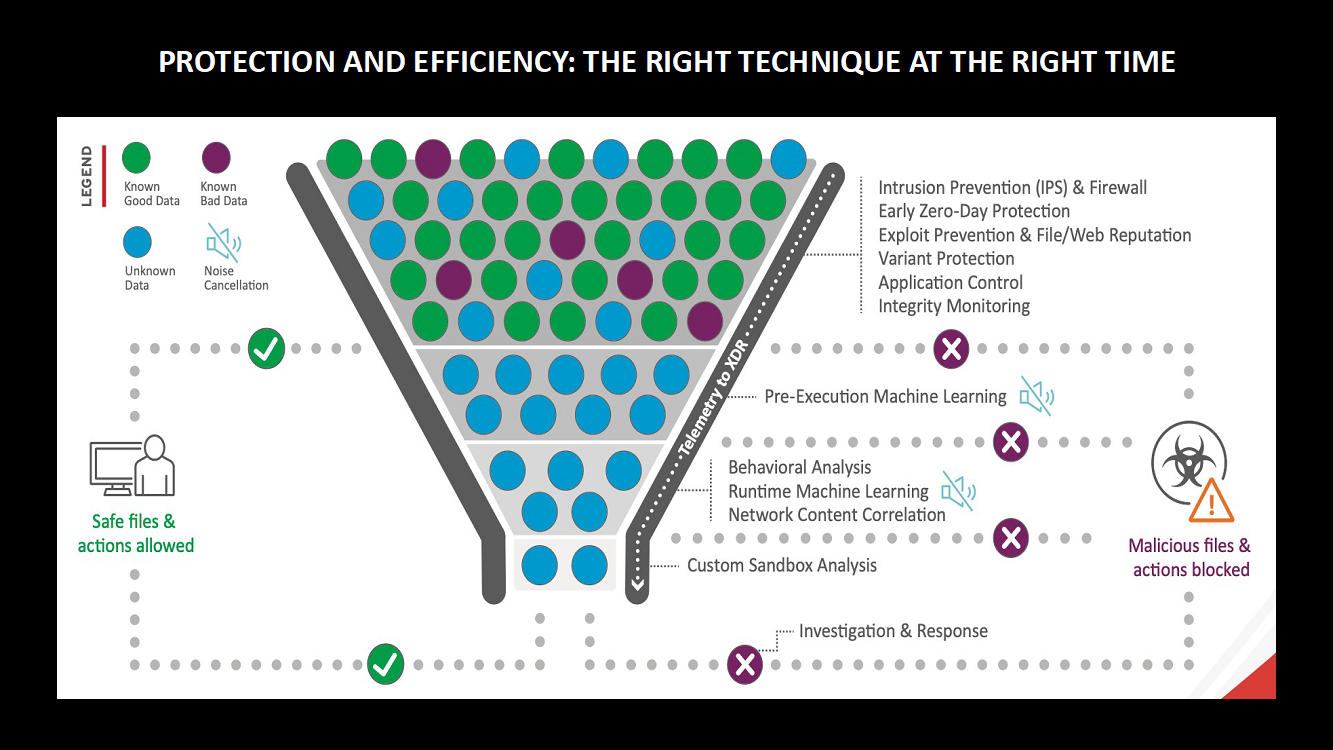 A blend of advanced threat protection techniques, combined with detection and response, delivered through a single-agent architecture to eliminate security gaps across any user activity and any endpoint.